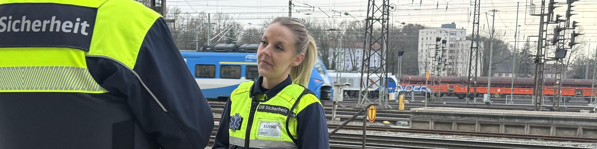 Ich bin seit Februar 2024 bei der DB Sicherheit, als Leiterin des Einsatzbereichs Augsburg, Einsatzsanitäterin und Diversity-Beauftragte.